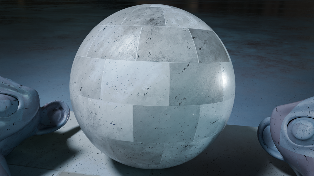 This product contains a Blender procedural material for rendering smoothed, tiled concrete — with aesthetics inspired by surfaces such as modern concrete flooring and industrial building walls:
