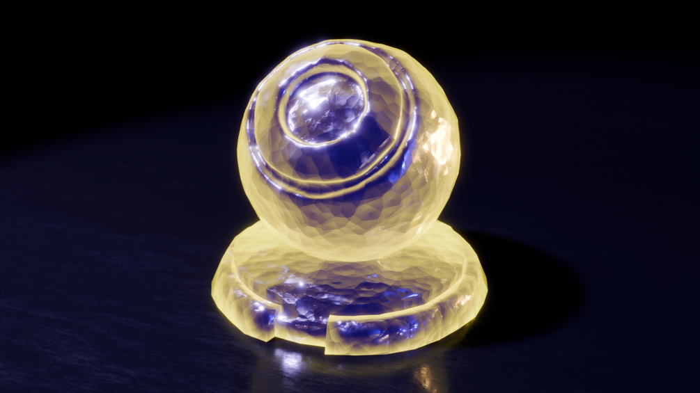 This product contains a Blender procedural material for rendering a glowing, crystalline appearance on an object’s surface.